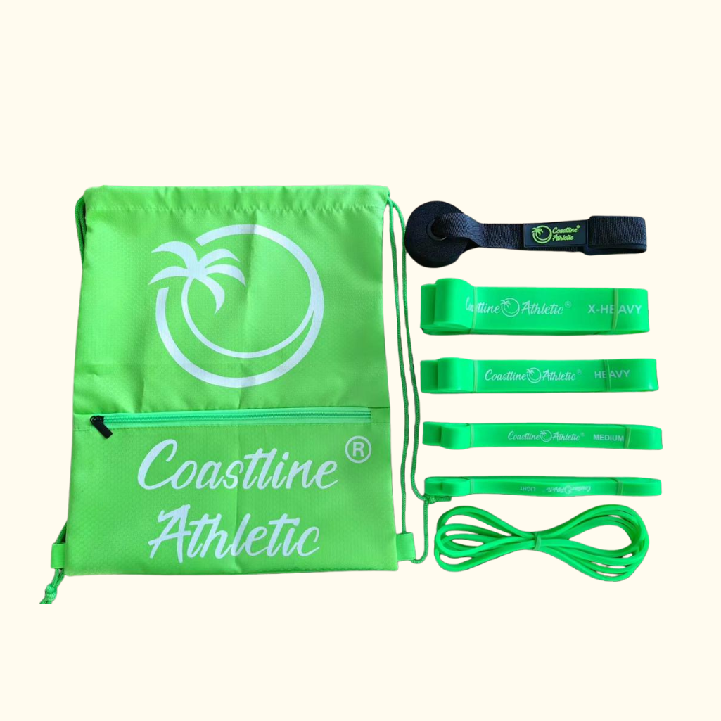 Poznaj gumy oporowe z naturalnego lateksu, stworzone do prawdziwego treningu — od rozgrzewki po mocne serie siłowe. Progresywny opór daje płynne napięcie w całym ruchu, dzięki czemu ćwiczysz skutecznie i bez chaosu. Nasz znak rozpoznawczy? KOLOR Gecko Green i logo Coastline Athletic — widoczne z daleka, łatwe do znalezienia WSZĘDZIE i natychmiast kojarzone z marką.